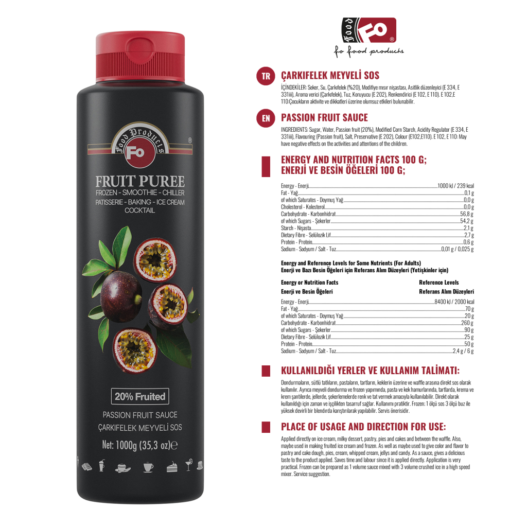 Ürün Özellikleri : Direkt olarak kullanıldığı için zaman ve işçilikten tasarruf sağlar. Kullanımı pratiktir. Yoğun meyve oranı ile elde edilen sosumuz farklı lezzetler elde etmek için idealdir. Rengi parlak ve canlıdır. Kullanıldığı ürünün albenisini artırır.
