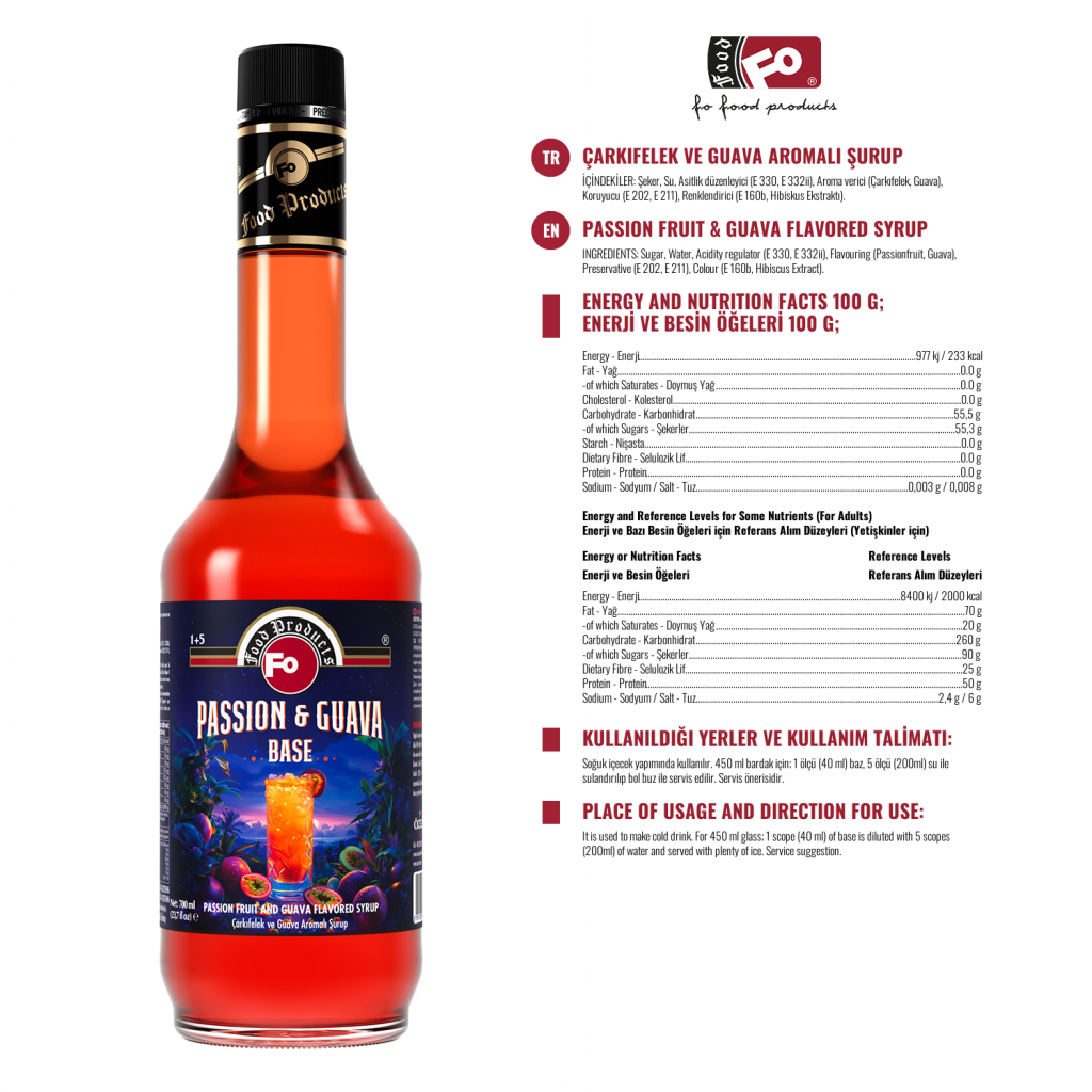 Kullanım Şekli: Soğuk içecek yapımında kullanılır. 450 ml bardak için; 1 ölçü (40 ml) baz,  5 ölçü (200ml) su ile sulandırılıp bol buz ile servis edilir. Servis önerisidir.