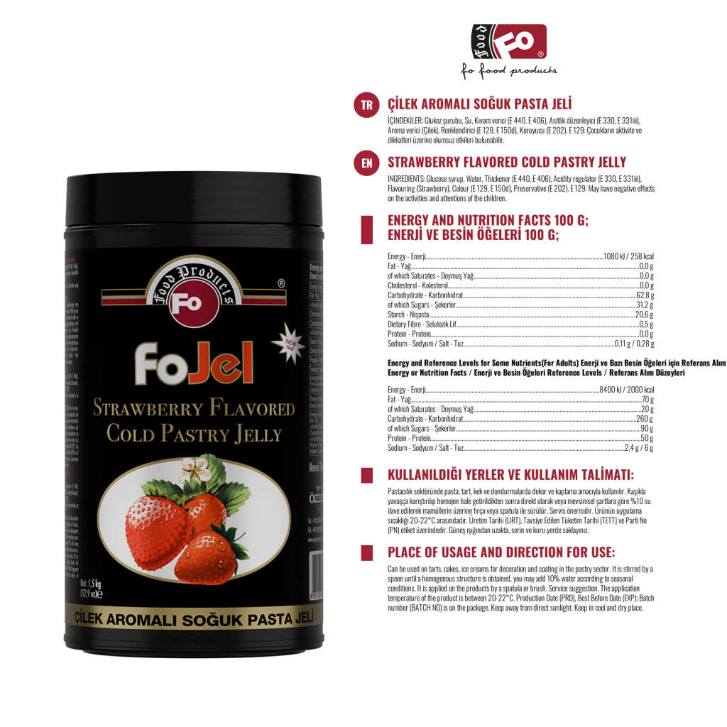 Ürün Özellikleri : Tamamen bitkisel olup hayvansal katkı içermez. Üzerine tatbik edilen ürünün daha parlak ve güzel görünmesini sağlar. Tadı ve kokusu ile gerçek çileğe özdeştir. 20-22 derece ortam sıcaklığında direkt olarak veya mevsim şartlarına göre % 10 su katılarak spatula veya fırça yardımı ile tatbik edilir. Kullanılan ürünün lezzetini ve albenisini artırır. Ürünün buzdolabında kurumasını önler, tazeliğini korur.