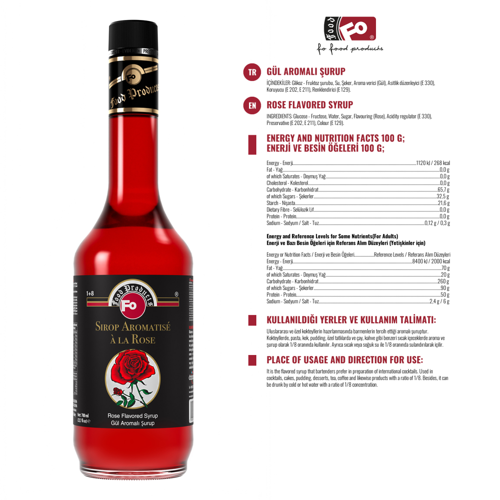 Ürün Özellikleri: Yapay tatlandırıcı içermez. Albenili ve sağlıklı ambalajı ile vitrinlerinize estetik bir görünüm kazandırır. Aroma, renk ve yoğunluk bakımından tercih nedenidir. Diğer şuruplara göre kuru madde oranı % 10 fazla olmasına rağmen, %30 daha az tatlıdır. Ağzı açıldıktan sonra kapak kapalı olarak muhafaza edilirse; son tüketim tarihine kadar aroma, renk ve yoğunluğunda herhangi bir azalma olmaz.
