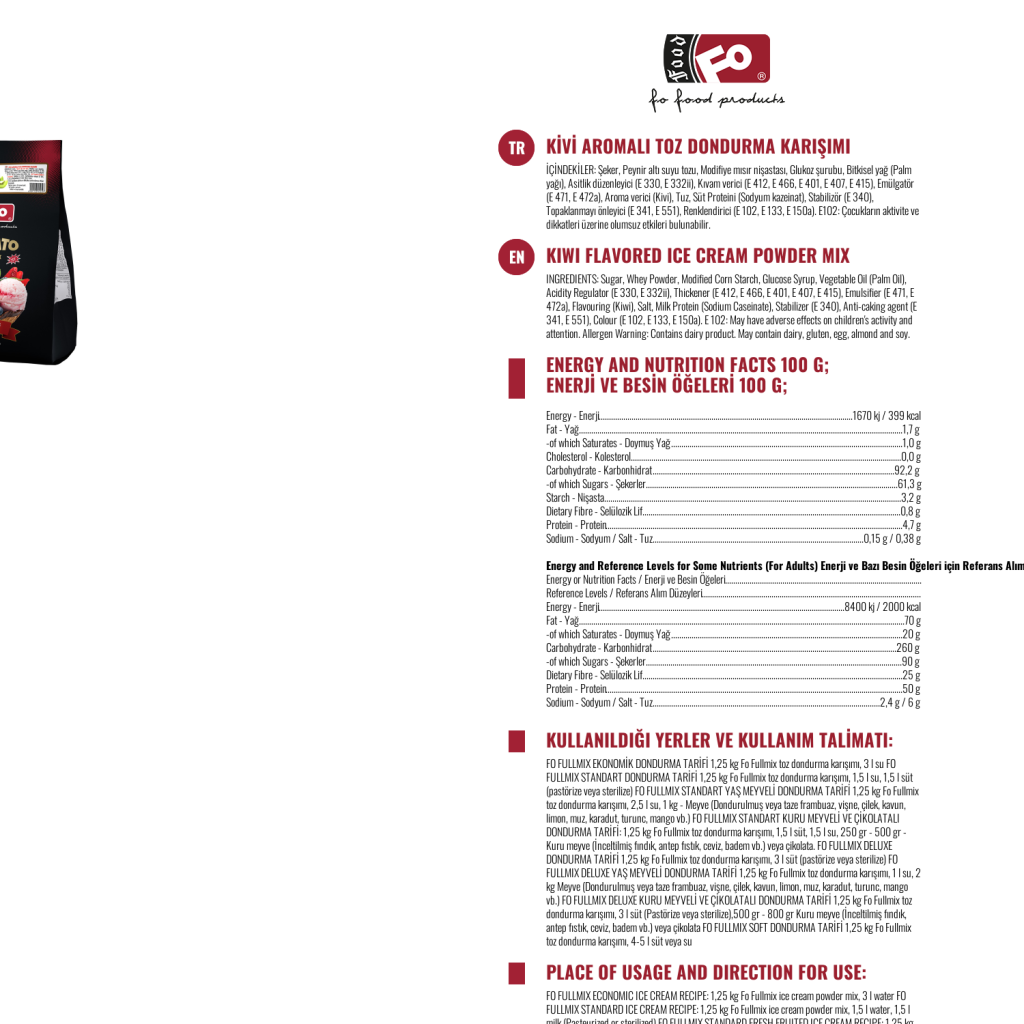 Kivi Aromalı Toz Dondurma Karışımı 1250g