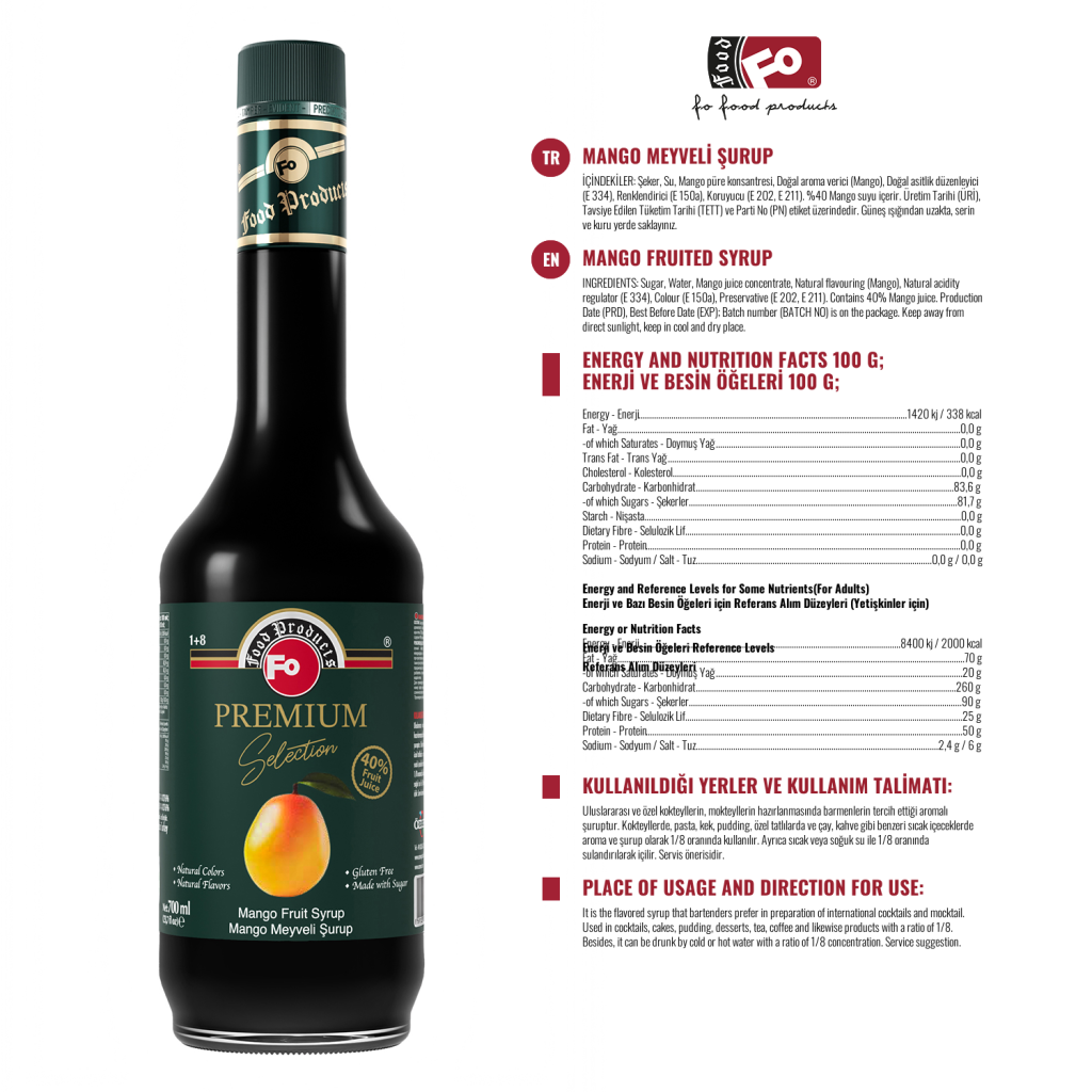 FO Mango Meyveli Şurup – Premium 700 ml