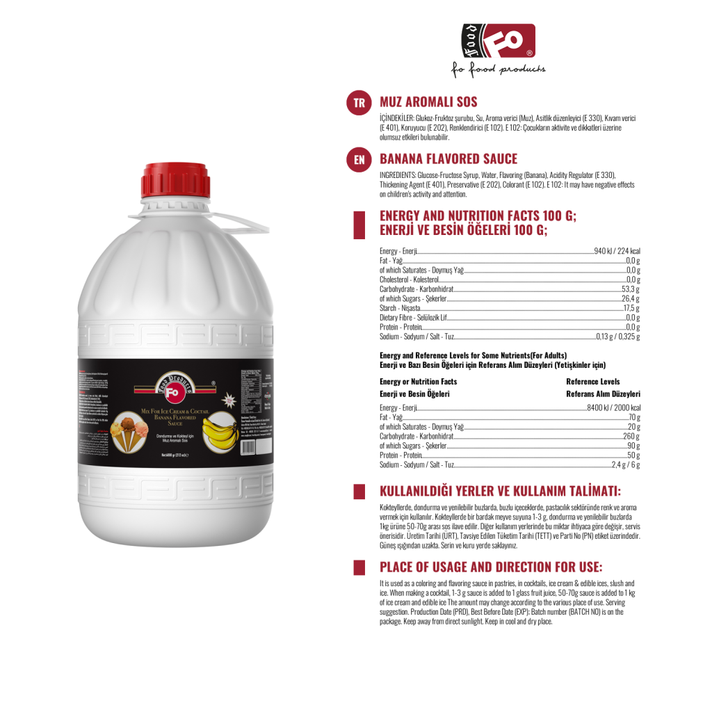 Ürün Özellikleri : Yapay tatlandırıcı içermez. 1 e 30 oranında sulandırılacak ölçüde  konsantre olduğundan ekonomik ve pratiktir. Kokteyllerde 1-3  dispenser basımı  (1-3 gr) diğer ürünlerde 1 kg. ürüne 50-70 gr. arası kokteyl sosu kullanılır. Aroma, renk ve yoğunluk bakımından tercih nedenidir.