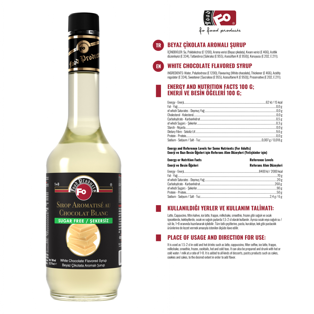Şekersiz Beyaz Çikolata Aromalı Şurup 700ml