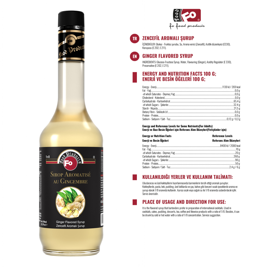 Kullanım Alanları: Alkollü ve alkolsüz kokteyllerde, kremalarda, krem, şantilerde, keklerde, pastalarda, yenilebilir buzlarda, ice slush’larda istenilen ölçüde pratik olarak kullanılır. Latte, Capuccino, fitre kahve, ice latte, frappe, milkshake, smoothie, frozen gibi soğuk ve sıcak içeceklerde, kokteyllerde,sıcak ve soğuk çaylarda 1,5-2 cl olarak kullanılır. Ayrıca sıcak veya soğuk su / süt ile, 1+8 oranında hazırlanarak içilebilir. Tüm tatlı çeşitlerine, pasta, kurabiye, kek gibi pastacılık ürünlerine de lezzet vermek amacıyla istenilen ölçüde ilave edilir.