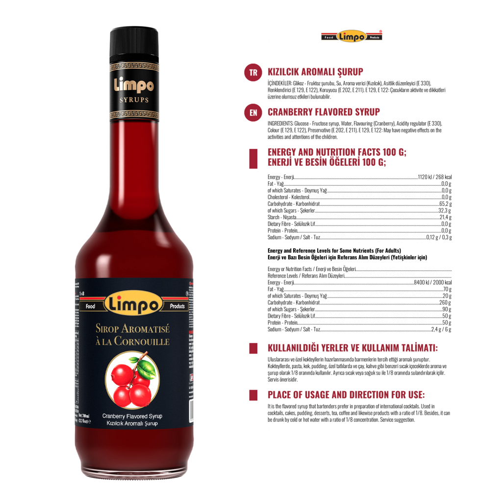 Kızılcık Aromalı Kokteyl Şurubu 700ml