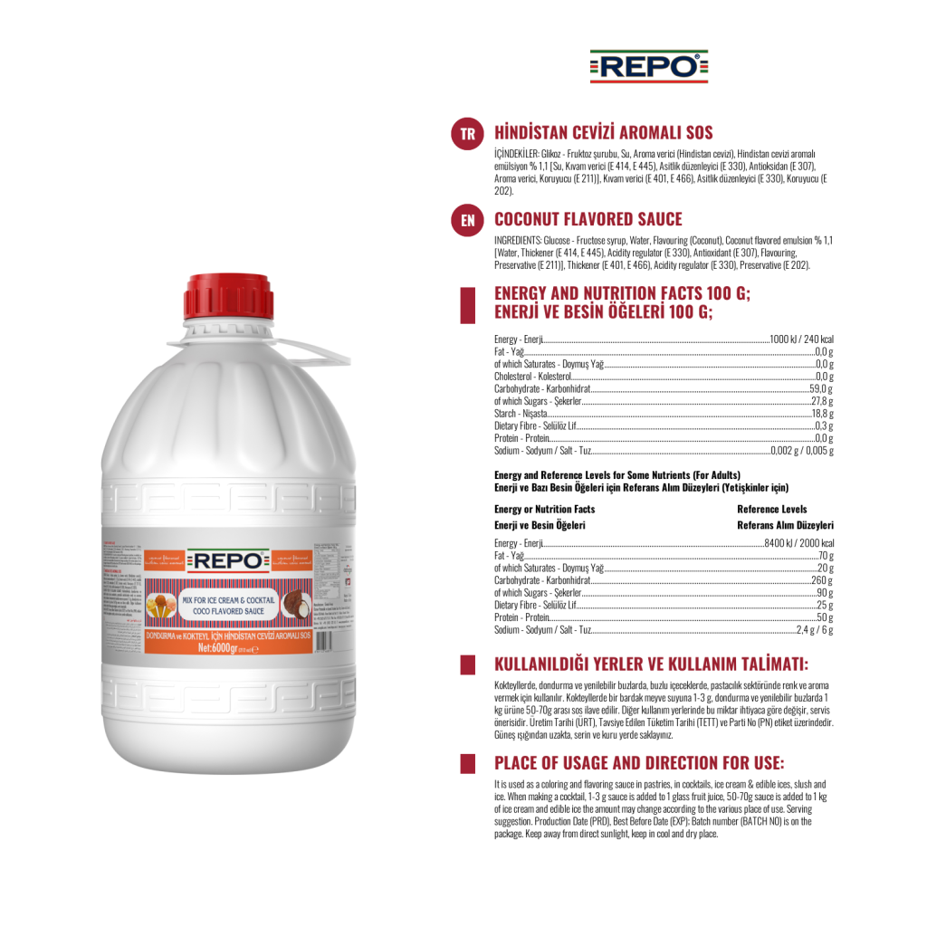 Kullanım Alanları : Alkollü ve alkolsüz kokteyllerde ve içeceklerde, kremalarda, krem şantilerde, yenilebilir buzlarda, ice-slush'larda, pudinglerde, yoğurtlarda, barlarda, kafelerde, restoranlarda, otellerde, evlerde istenilen ölçülerde pratik olarak kullanılır.