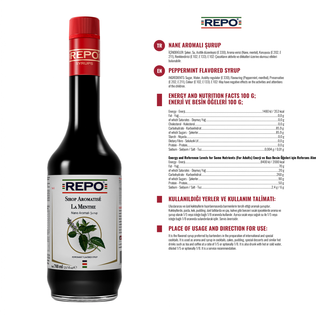 Kullanım Alanları: Alkollü ve alkolsüz kokteyllerde, kremalarda, krem, şantilerde, keklerde, pastalarda, yenilebilir buzlarda, ice slush’larda istenilen ölçüde pratik olarak kullanılır.